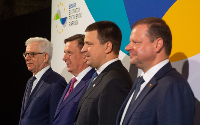 波蘭外交部長Jacek Czaputowicz,拉脫維亞總理MārisKu?inskis,愛沙尼亞總理JüriRatas(中心)和立陶宛總理Saulius Skvernelis將于周一在塔林舉行會(huì)談。2018年6月4日。 來源:(Raigo Pajula / Government Office)