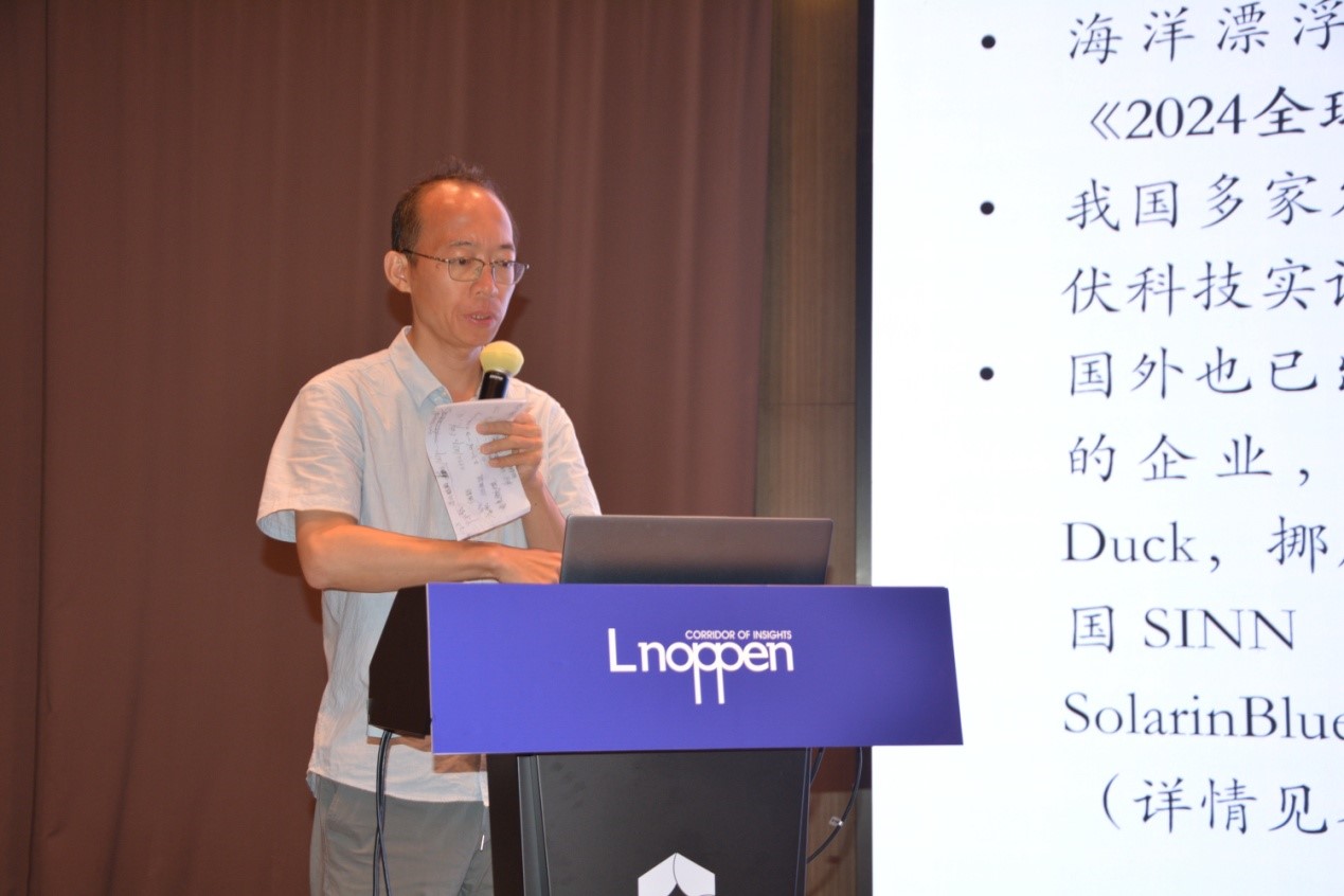交通運(yùn)輸部天津水運(yùn)工程科學(xué)研究院博士趙旭發(fā)表了題為《馭光向海,風(fēng)光無(wú)限:一種可快速部署的折疊型海上漂浮式光伏解決方案TK-FFPV》的演講,分享了一種可灌輸部署的折疊平臺(tái)上漂浮式光伏解決方案TK-FFPV,并介紹了海上漂浮光伏的發(fā)展和挑戰(zhàn)。