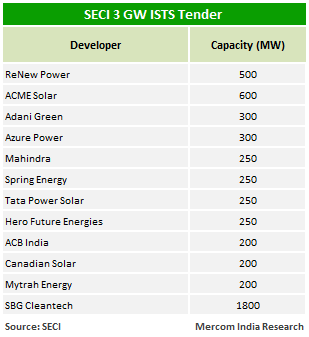 SBG Cleantech最高報價為1800兆瓦; ReNew Power出價為500兆瓦,ACME為600兆瓦,Adani Green和Azure Power出價為300兆瓦,Mahindra,Sprng Energy,塔塔電力太陽能和英雄未來能源公司每個出價250兆瓦; SECB負責人詳細闡述了ACB印度,Canadian Solar和Mytrah各自競購200MW電力。