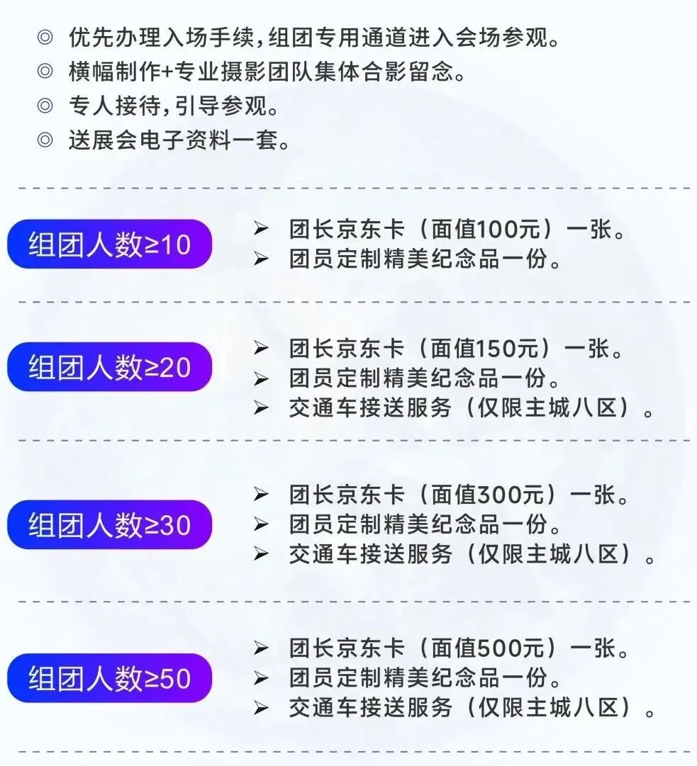 目前,組團參觀正在火熱報名中,歡迎汽車行業相關人員組團報名,尊享各項VIP福利,到展會上尋求技術解決方案與供應鏈合作伙伴。