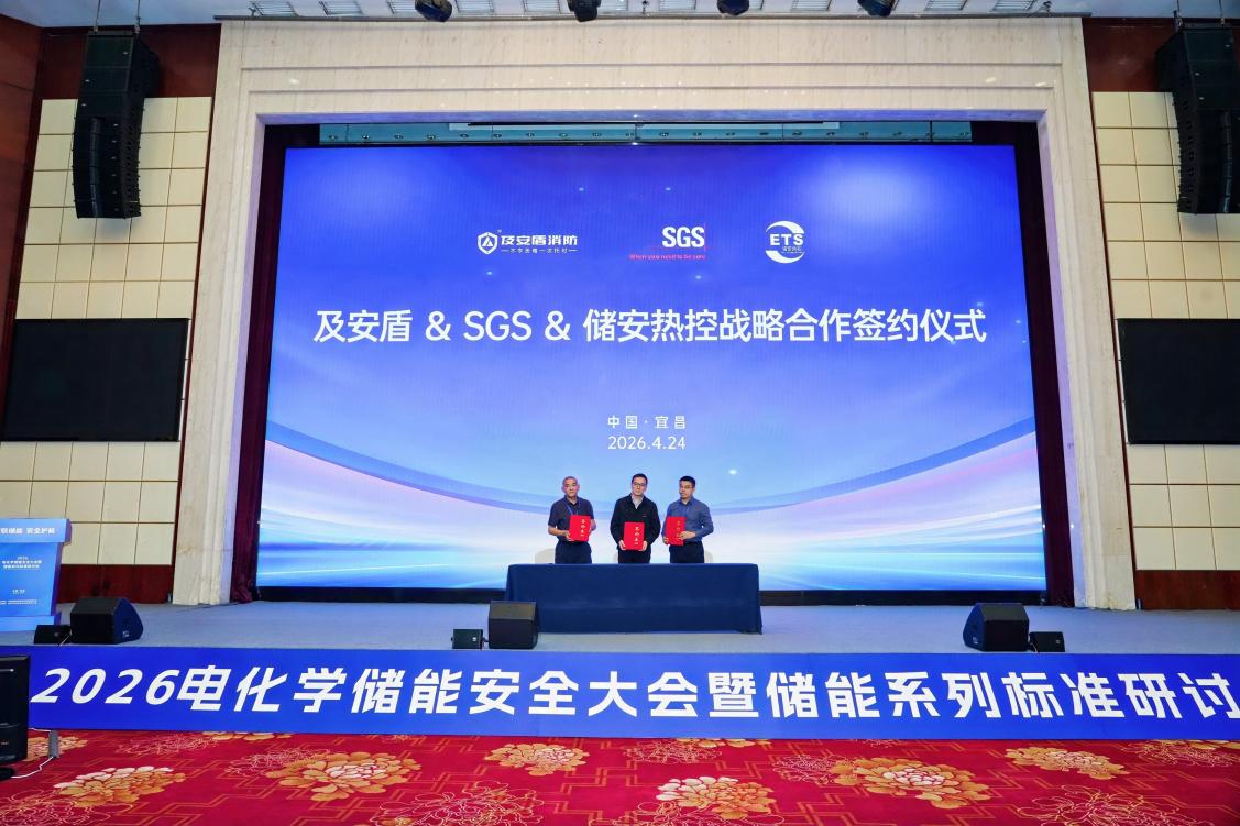 作為本次大會的承辦方,及安盾消防展示了其在熱氣溶膠消防領域的領先實力。會議期間,及安盾消防與德國萊茵TÜV、SGS、儲安熱控、Intertek四家國際領先的檢測認證機構分別簽署戰略合作協議。各方將圍繞儲能電池全層級安全測試驗證、儲能消防產品檢測認證、消防標準研究與合規評審、技術交流及專業人才培養等開展深度合作,共同推進儲能安全技術研究與產品合規能力提升。