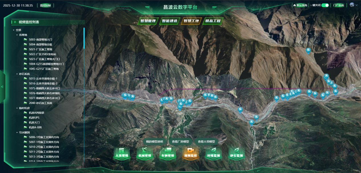 圖為昌波云數(shù)字孿生平臺(tái)-三維場景視頻監(jiān)控點(diǎn)位。受訪者供圖