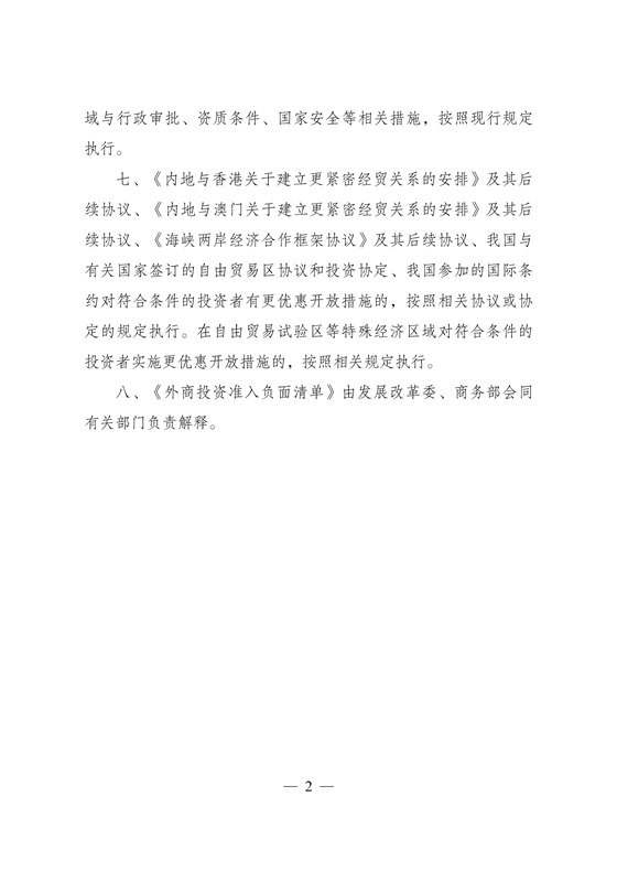 1.加油站。取消同一外國投資者設立超過30家分店、銷售來自多個供應商的不同種類和品牌成品油的連鎖加油站建設、經營須由中方控股的限制。