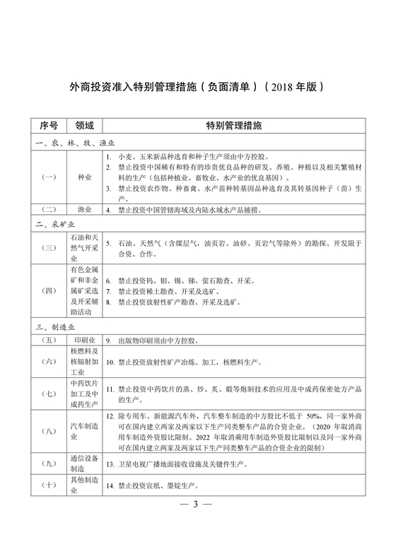 此外,2018年版負面清單采用了表格形式,根據《國民經濟行業分類》(GB/T 4754—2017)進行了分類。