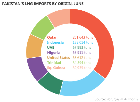 圖表顯示巴基斯坦LNG原產(chǎn)地進(jìn)口情況