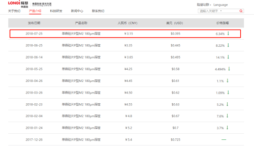 年內(nèi)第九次調(diào)價!隆基單晶硅片下調(diào)6.34%
