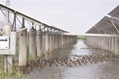 該基地水稻試種已獲成功,但其最重要的功能仍是光伏發(fā)電。據(jù)了解,該工程2015年動工興建,2016年11月建成并入國家電網(wǎng),目前年發(fā)電量達到1.7億度,能滿足7萬戶普通家庭一年的用電需求。