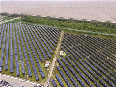 4500畝灘涂鹽堿地成灘涂農(nóng)光互補光伏發(fā)電基地。 胡志欽 攝