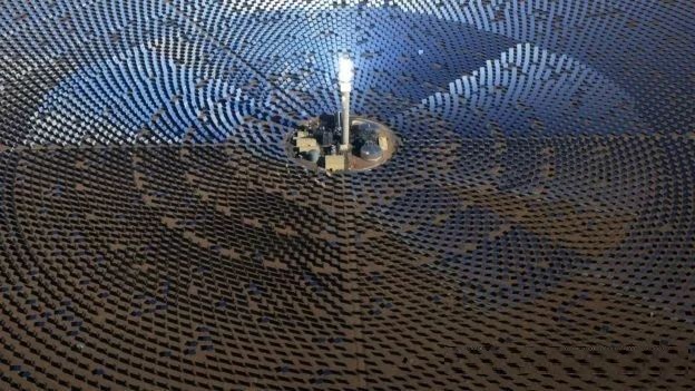 Aurora項目預計將為9 萬戶家庭供電,預計每年可生產 500GW的電力,排碳量也可減少200 萬噸。鏡場將布滿12,000 面塔式定日鏡,利用鏡子聚集太陽光至中央220米高的吸熱塔中,其內部熔鹽(molten salt)將被加熱到攝氏565度。