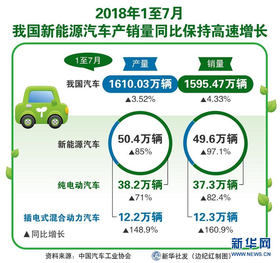 記者10日從中國(guó)汽車工業(yè)協(xié)會(huì)獲悉,1至7月我國(guó)汽車產(chǎn)銷量繼續(xù)保持小幅增長(zhǎng),其中,新能源汽車產(chǎn)銷分別完成50.4萬輛和49.6萬輛,比上年同期分別增長(zhǎng)85%和97.1%,新能源汽車產(chǎn)銷量同比呈現(xiàn)高速增長(zhǎng)態(tài)勢(shì)。