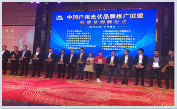 2018 年 3 月 23 日,中國戶用光伏巡回展佛山論壇隆重召開,佛山及東莞發 改局、經信委、技術局、行業協會、認證機構、聯盟成員、參展商、佛山 及全國各地經銷商代表、EPC 代表等 200 多人出席會議,共話分布式尤其是 家庭戶用光伏商業模式的創新發展。同時,舉行了隆重的中國戶用光伏品 牌推廣聯盟第三批新成員授牌儀式以及 2018 中國戶用光伏商業模式創新獎 頒獎典禮。