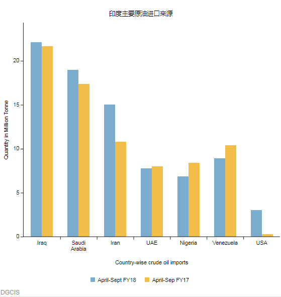 按價值計算,印度僅在9月份就從伊朗進(jìn)口了價值9.1億美元的原油,比去年同月進(jìn)口的原油價值5億7千萬美元增加了60%。累計從2018年4月至9月期間從伊朗進(jìn)口的石油價值從去年同期的38.4億美元增加一倍多,達(dá)到77.4億美元。