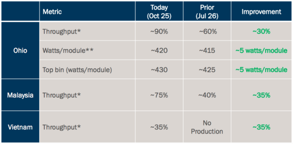 首席執(zhí)行官Widmar還指出,該公司在俄亥俄州的新1.2 GW工廠的建設(shè)正在按計(jì)劃進(jìn)行。到2020年,當(dāng)所有工廠完工并竣工時(shí),公司預(yù)計(jì)年產(chǎn)能將達(dá)到7.6吉瓦。
