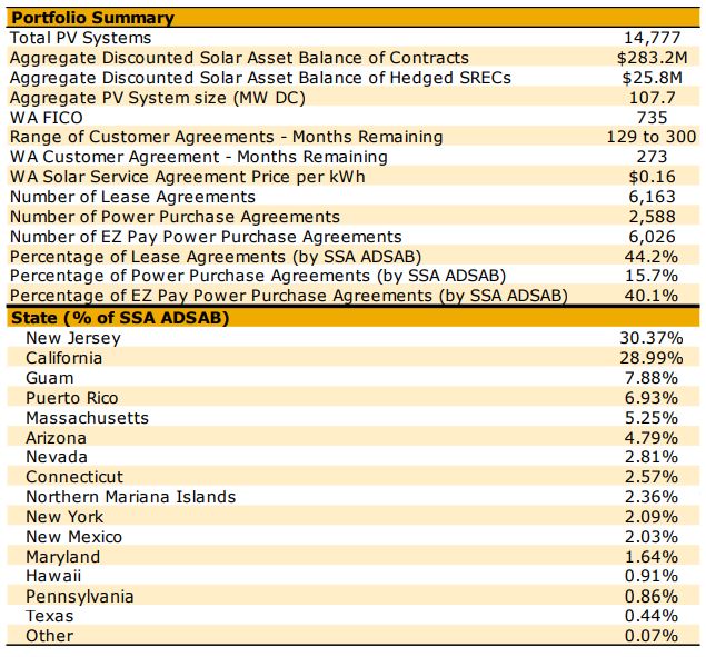 投資組合評級的驅動因素包括“特殊”拖欠率介于0.3%和0.4%之間,平均FICO得分為735,以及對Sunnova管理團隊的強大能力感知。負面考慮因素包括關島凈計量的未來可能變化(該投資組合的7.2%),仍在不斷變化的波多黎各市場的復雜性,2013年以后的歷史缺乏,地理集中度過高以及太陽能系統(tǒng)降級速度超過預期的風險。
