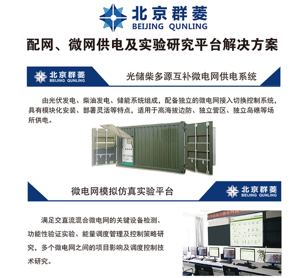 北京群菱能源科技有限公司專業(yè)致力于新能源檢測(cè)及系統(tǒng)集成、電動(dòng)汽車充電站檢測(cè)及系統(tǒng)集成、電源測(cè)試設(shè)備研發(fā)與制造的高科技生產(chǎn)型企業(yè)。針對(duì)微電網(wǎng)實(shí)驗(yàn)研究領(lǐng)域的難題,推出配網(wǎng)、微電網(wǎng)供電及實(shí)驗(yàn)研究平臺(tái)解決方案。
