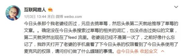 阿里系這邊,旗下子公司支付寶被爆出在“年度賬單”活動中,靠默認勾選套取用戶數(shù)據(jù);騰訊系也不消停,先是吉利控股董事長李書福公開質(zhì)疑微信偷看用戶聊天記錄,幾天后騰訊和廣州市政度試推出的全國首張“微信身份證”又被指責“動機不純”;撇開這兩家,號稱中國最大的內(nèi)容平臺的今日頭條,被質(zhì)疑利用手機麥克風獲取用戶數(shù)據(jù)隱私……