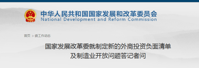 發(fā)改委指出,汽車(chē)行業(yè)將分類(lèi)型實(shí)行過(guò)渡期開(kāi)放,2018年取消專(zhuān)用車(chē)、新能源汽車(chē)外資股比限制。