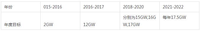 2014年1月,印度總理納倫德拉•莫迪公布了太陽(yáng)能振興計(jì)劃:到2022年,印度要實(shí)現(xiàn)可再生能源發(fā)電總量175GW ,其中太陽(yáng)能裝機(jī)容量100GW(40GW太陽(yáng)能屋頂發(fā)電項(xiàng)目和60GW大中型太陽(yáng)能并網(wǎng)項(xiàng)目)。總投資額約8000~10000億元。目前印度的太陽(yáng)能裝機(jī)容量剛剛突破10GW,而為了實(shí)現(xiàn)2022年的目標(biāo),印度必須極大加快太陽(yáng)能建設(shè)的步伐,每年平均新增裝機(jī)量要達(dá)到15GW。