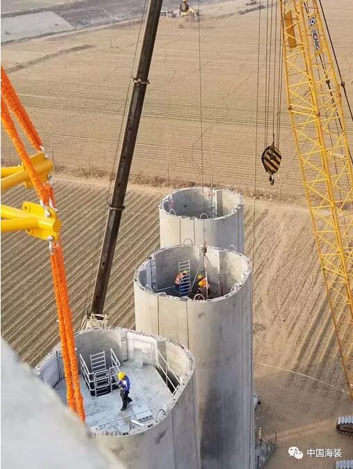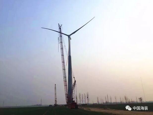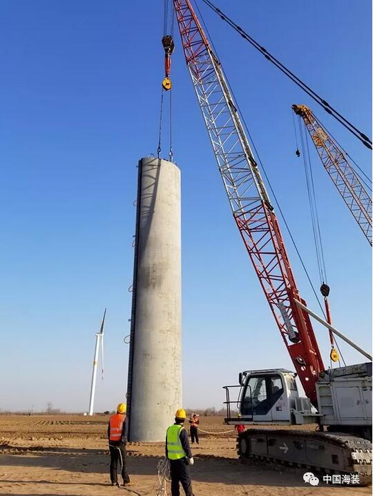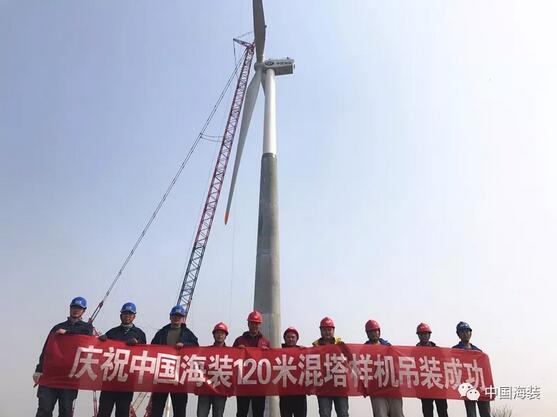 2017年7月,中國海裝正式啟動(dòng)120米輪轂高度鋼混塔筒研制項(xiàng)目,12月開始塔筒吊裝工作。整個(gè)項(xiàng)目在歷經(jīng)九個(gè)月的精耕細(xì)作后,于2018年3月22日,完成樣機(jī)吊裝工作。