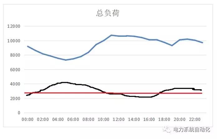 例如:某用戶并入電網的負荷特性曲線為(藍線),微電網一體化運營主體可申報與并入電網峰谷反向的容量曲線(黑線)。同時,一體化運營主體申報容量曲線為一條直線(紅線)也存在技術可行性。