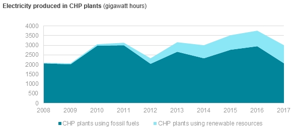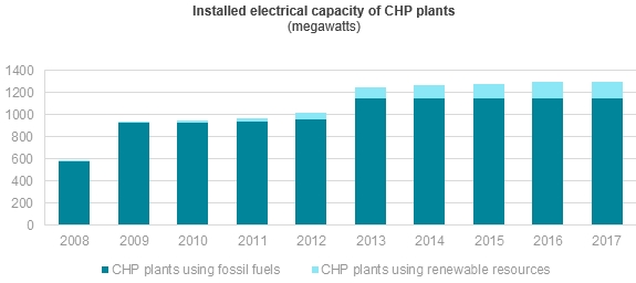 自2008年以來,由RES供??電的熱電聯(lián)產(chǎn)電廠的裝機(jī)容量增長了15倍。與2016年相比,這些熱電聯(lián)產(chǎn)電廠的裝機(jī)容量增加了8%,2017年達(dá)到155兆瓦。