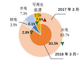 圖2 2017及2018年3月印度發(fā)電結構變化